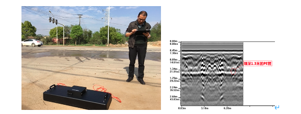 图2.用400MHz探地雷达管线测试——上海燃气PE管深度1.3米,实测1.28米
