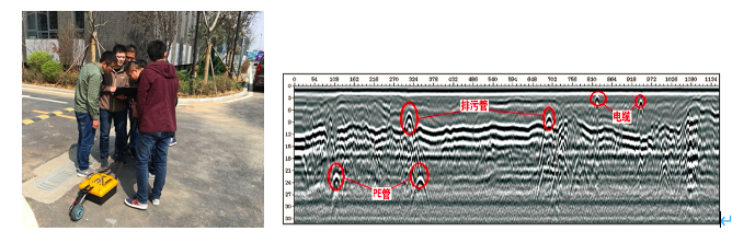 图1. 用400MHz探地雷达管线测试人行横道管线分布情况